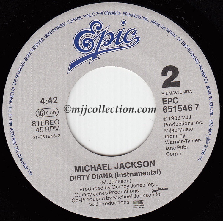 1988 – “Dirty Diana” – 2 Track 7″ Single